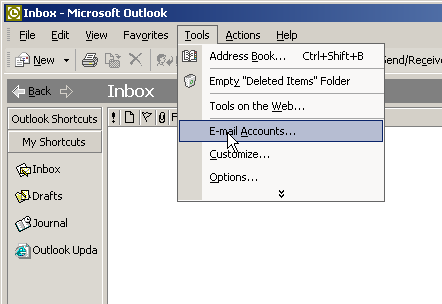 Open Outlook. Select Tools->E-mail Accounts.