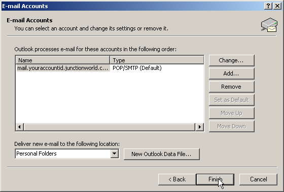 | Close the accounts list box (press "Finish") and test your account. | |||