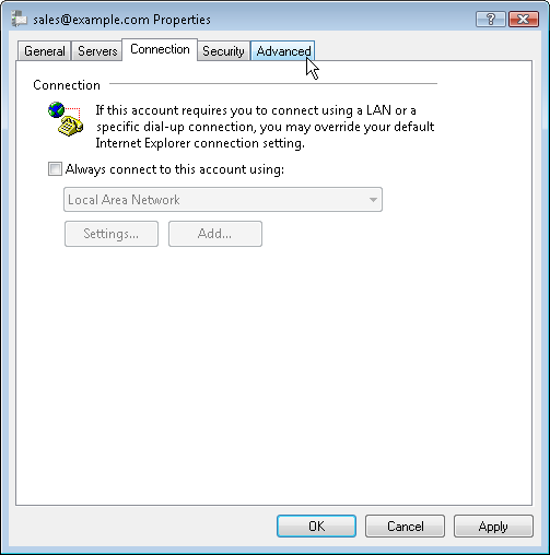 Check the 'Connection' tab to make sure you are using the correct connection. In most cases you will not need to change anything here.